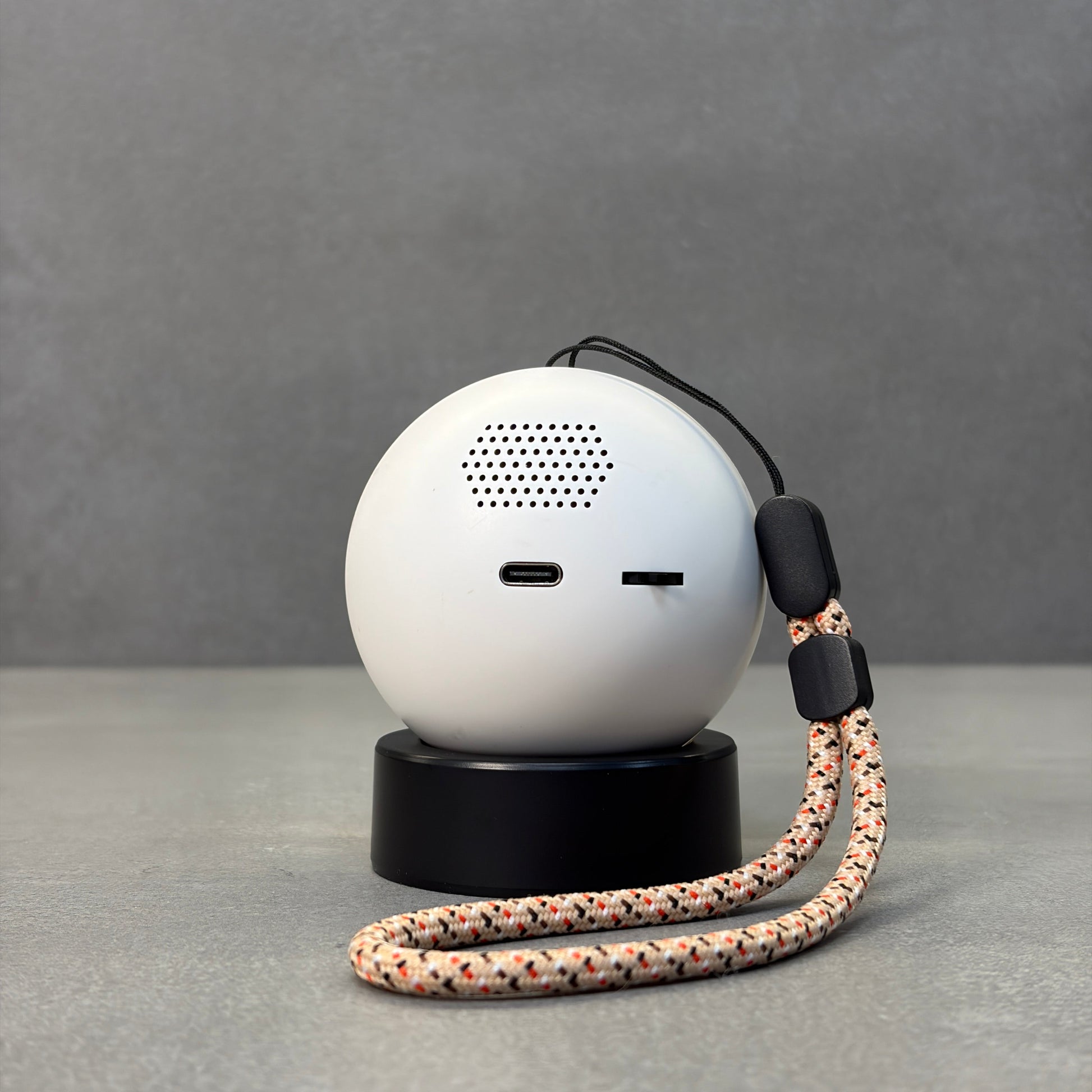 Myauraball comes with an 800mAh battery that provides 2–4 hours of continuous playback. Recharging is simple using the included USB cable.
