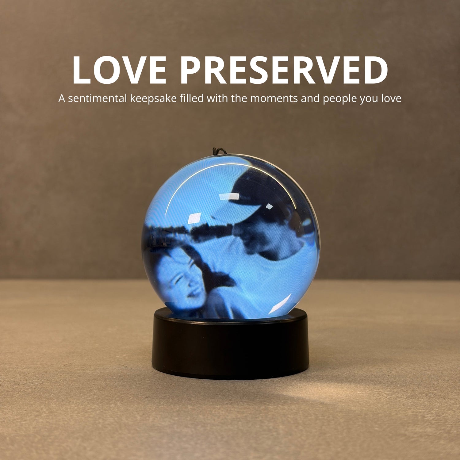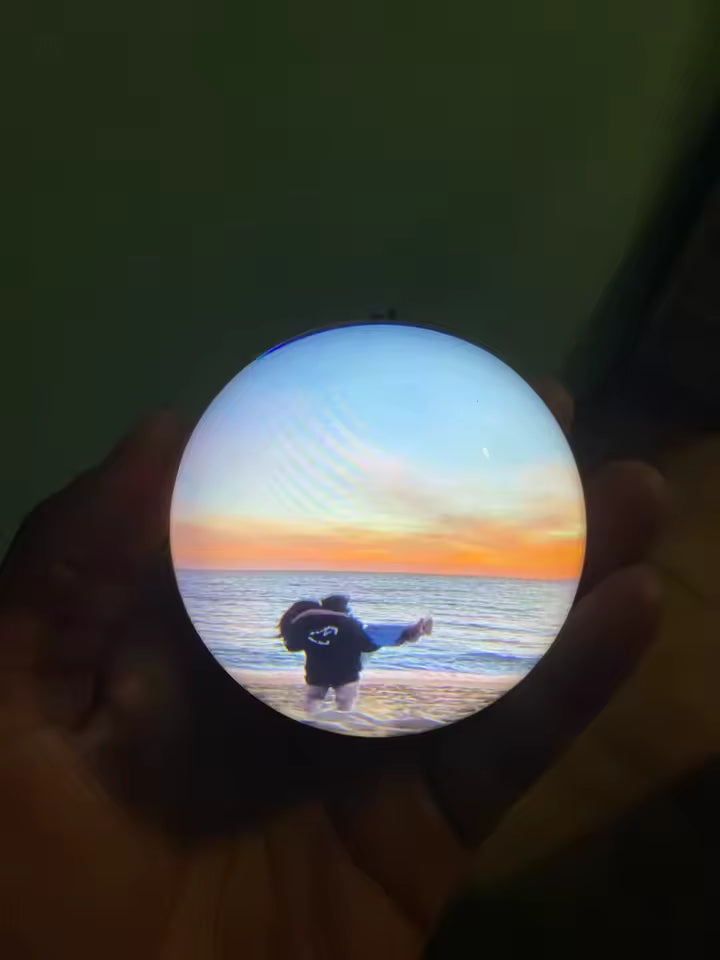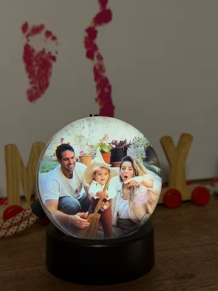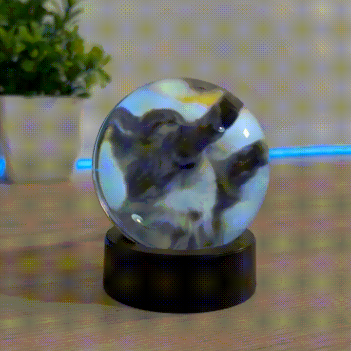 yauraball™ turns your photos and videos into a beautiful 3D display. Pets, kids, trips, special moments — everything comes to life inside a crystal-clear sphere. Perfect for your desk, nightstand, or living room.